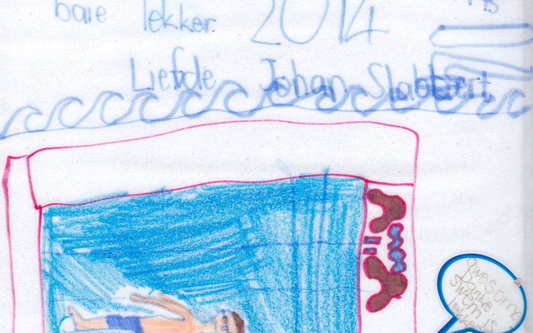 Johan Slabbert by AquaS | Aug 29, 2019 | Sin categoría Liewe Tannie Annemarie Dankie vir die lekker jaar. Dit was awê-som. Dankie dat jy my leer swem het. Swem is baie lekker.